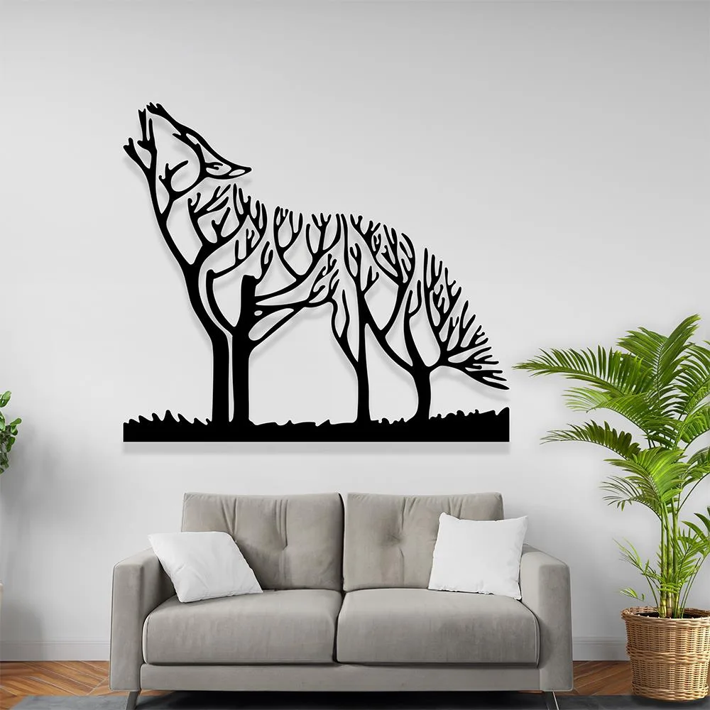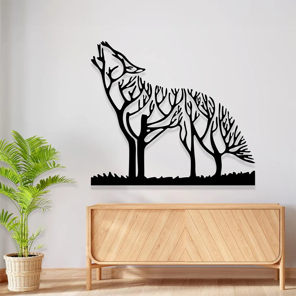 Duvar süsü; bu eşsiz duvar tablosu, evinize vahşi ve mistik bir dokunuş katmanın yanı sıra modern bir tasarım öğesi olarak da öne çıkıyor. Tablomuzda yer alan uluyan kurt, vahşi doğanın özgürlüğünü simgelerken, kurumuş ağaç dallarıyla çevrili olması doğanın döngüsüne ve güzelliklerine bir saygı gösterisi niteliğindedir. Her bir hat, lazer kesim teknolojisinin ustalığını yansıtarak odanıza derinlik ve karakter katar.